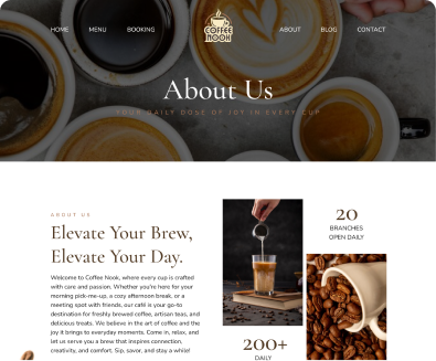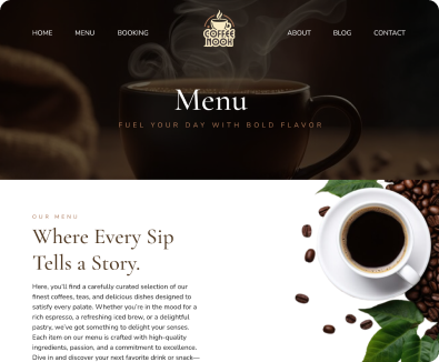CoffeeNook surfaces menu highlights, seasonal specials, and location details fast. Order links and loyalty prompts keep regulars coming back.