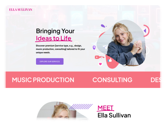 Editorial yet warm. Showcase work, services, and personality with client-ready polish.