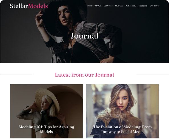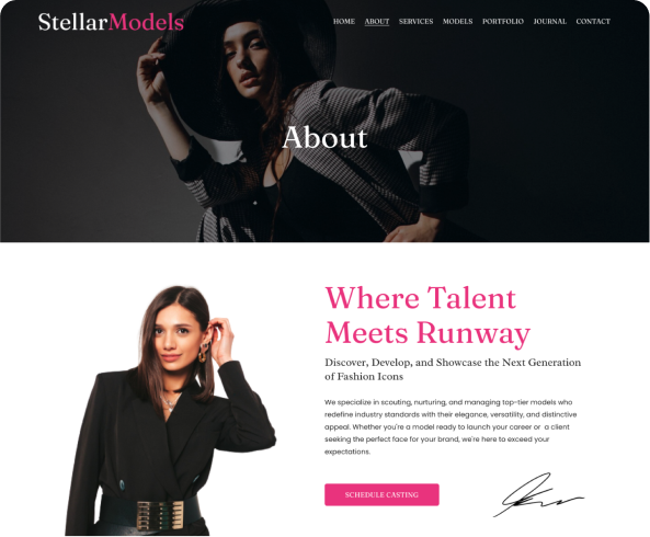 Step into the spotlight with Stellar Models’ customizable template. Designed to highlight your unique style, these templates offer striking visuals and seamless navigation. Elevate your modeling portfolio with Stellar Models.